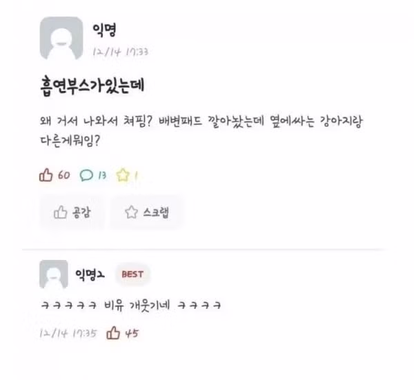 흡연부스 이짤 바로 반박 가능한데?ㅋㅋㅋㅋ