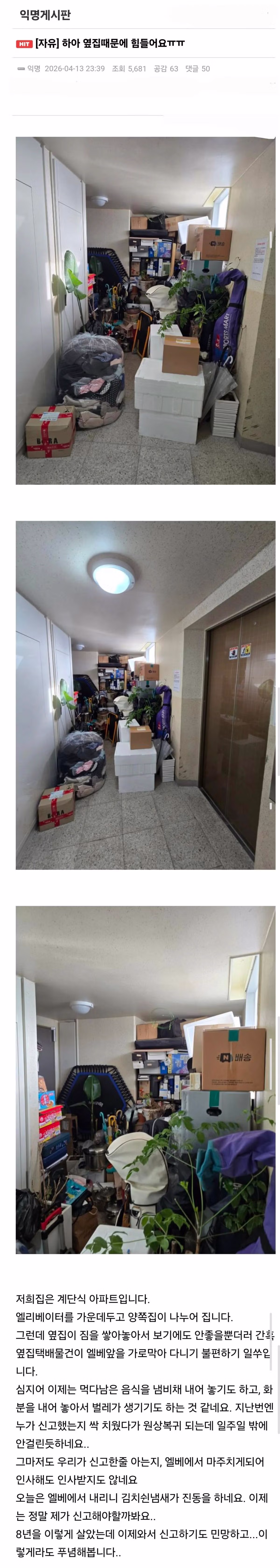 옆집 적치물 때문에 미치겠습니다