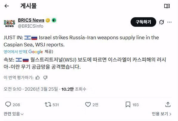 속보) 이스라엘. 러시아 무기 공급망 공격