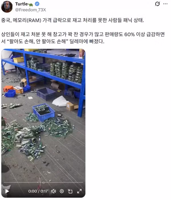 중국 메모리 가격 급락으로 재고처리못해서 패닉상태 .jpgif