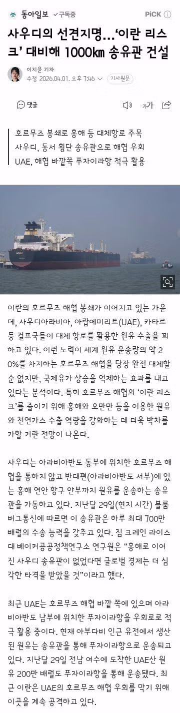 송유관 건설했던 사우디의 선견지명/깊어지는 정부의 고민