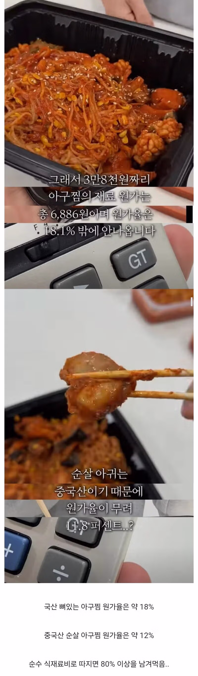 어떤 유튜버가 분석한 아구찜의 원가율