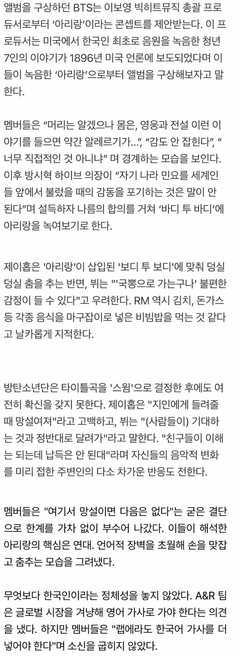 BTS 이번 앨범에 한국어 넣고 싶어함 + 국뽕하기 싫어했음