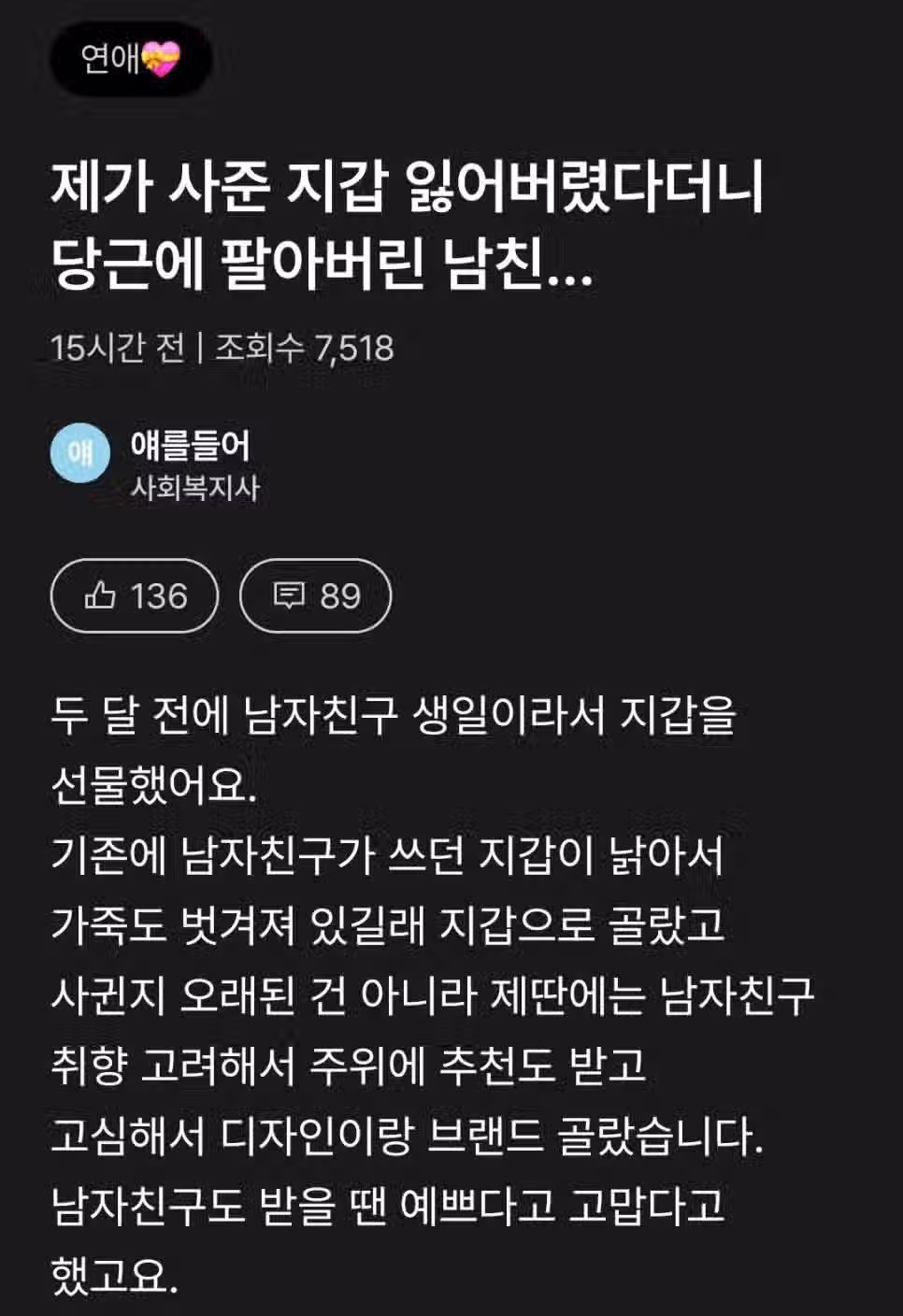 내가 사준 지갑 잃어버렸다더니 당근에 팔아버린 남친