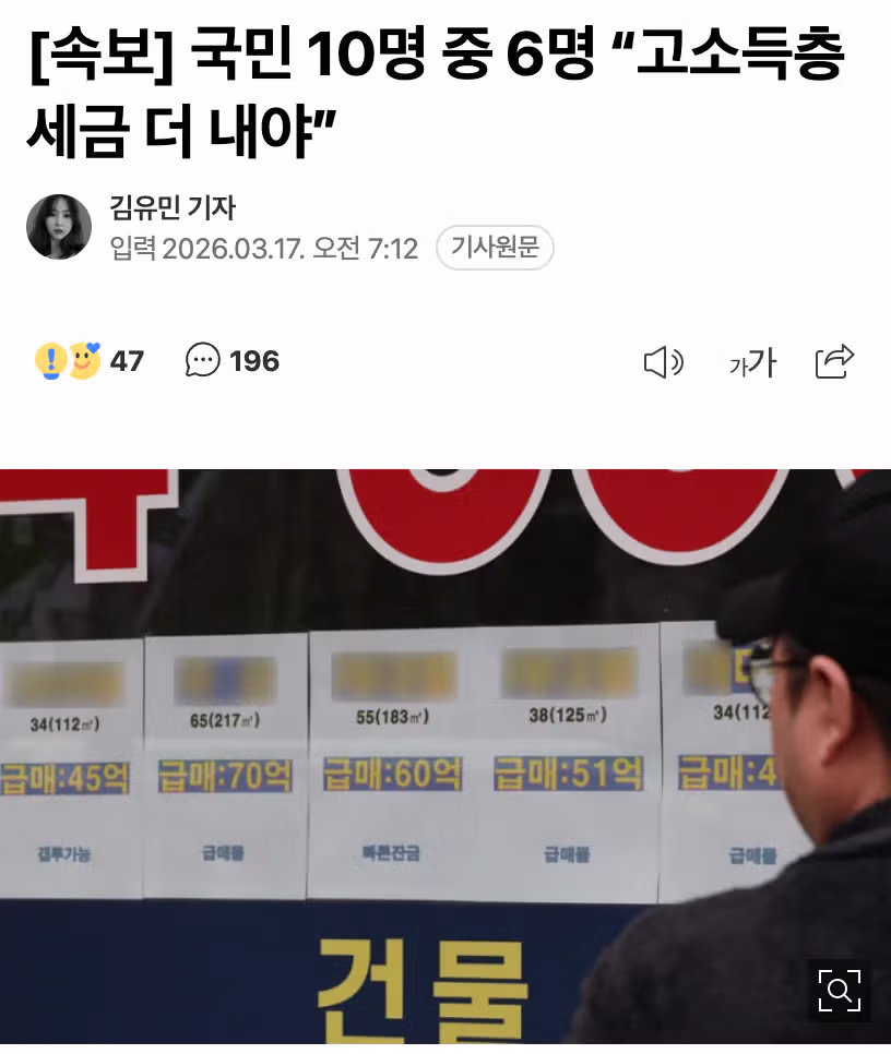 [속보] 국민 10명 중 6명 “고소득층 세금 더 내야”