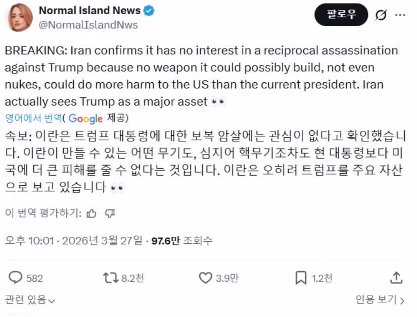 이란 "우리는 핵무기가 필요없고, 트럼프를 암살하지도 않을 것이다"