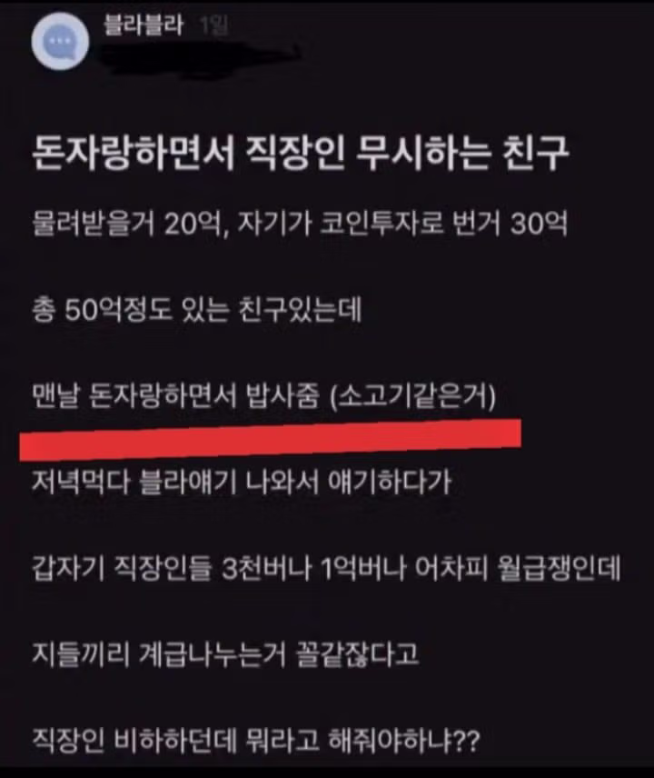돈자랑 하면서 직장인 무시하는 친구