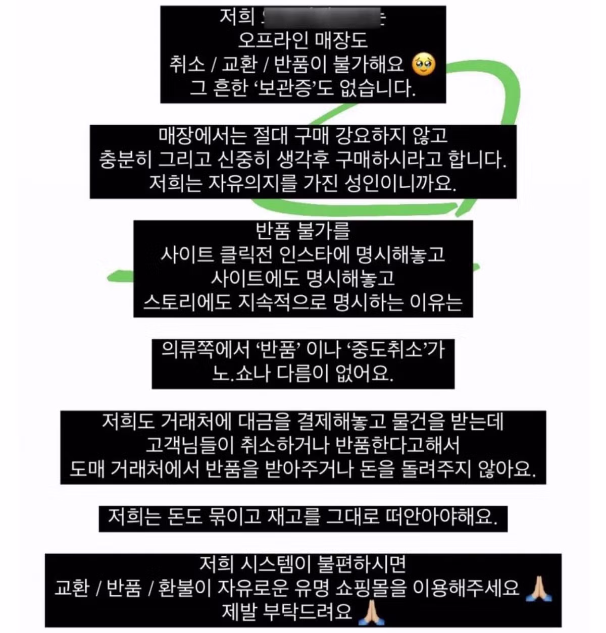 인스타에서 옷파는 사장이 반품받지않는 이유