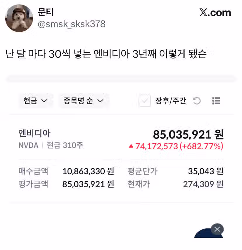 3년동안 엔비디아에 매달 30만원씩 넣은 사람 근황.jpg