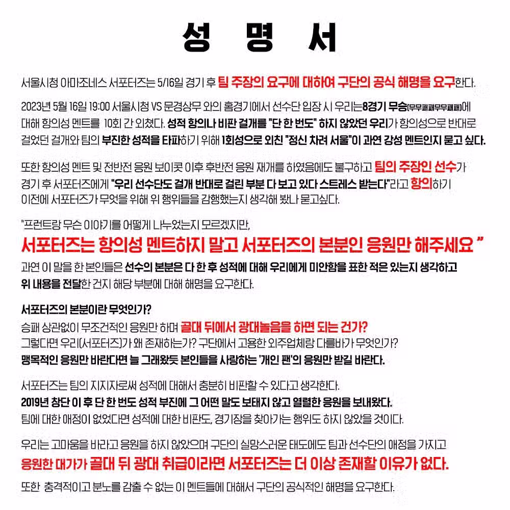 팬들한테 항의성 멘트하지 말고 응원만 하라는 여자 축구선수 ㄷㄷㄷㄷㄷㄷㄷㄷ
