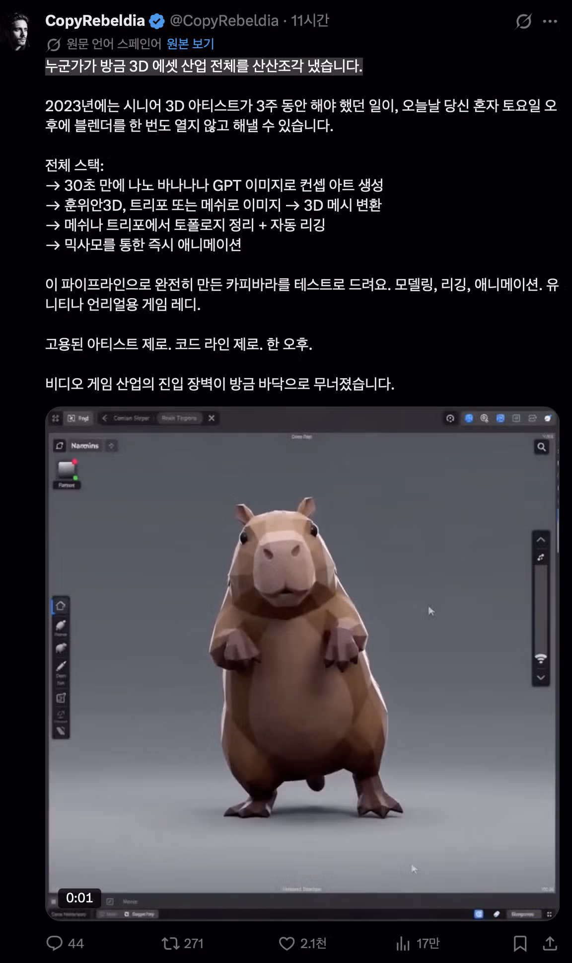 X펌) 누군가가 방금 3D 에셋 산업 전체를 산산조각 냈습니다 - 밈카세