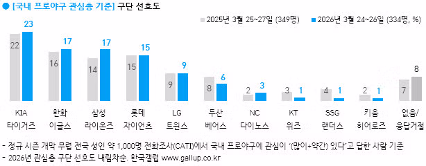 [KBO] 갤럽 가장 좋아하는 프로야구 팀 조사 결과