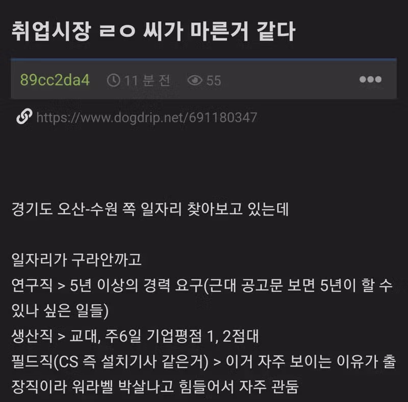 취업시장이 망해버린걸 체험한 사람
