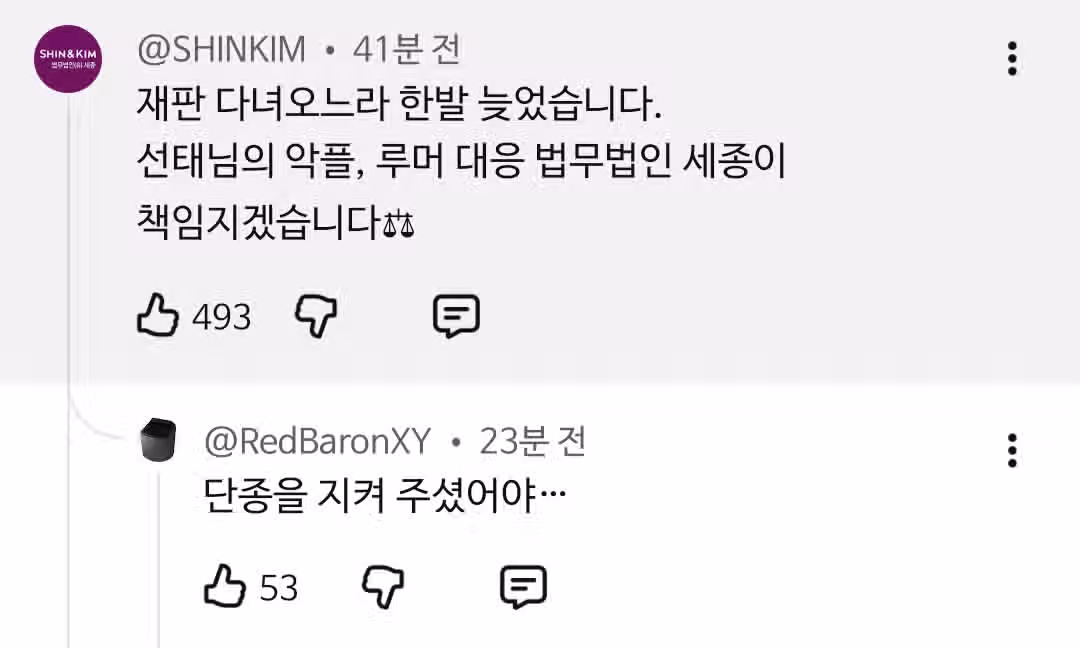 김선태 유튜브에 댓글 단 법무법인 세종. 그런데 답글이...