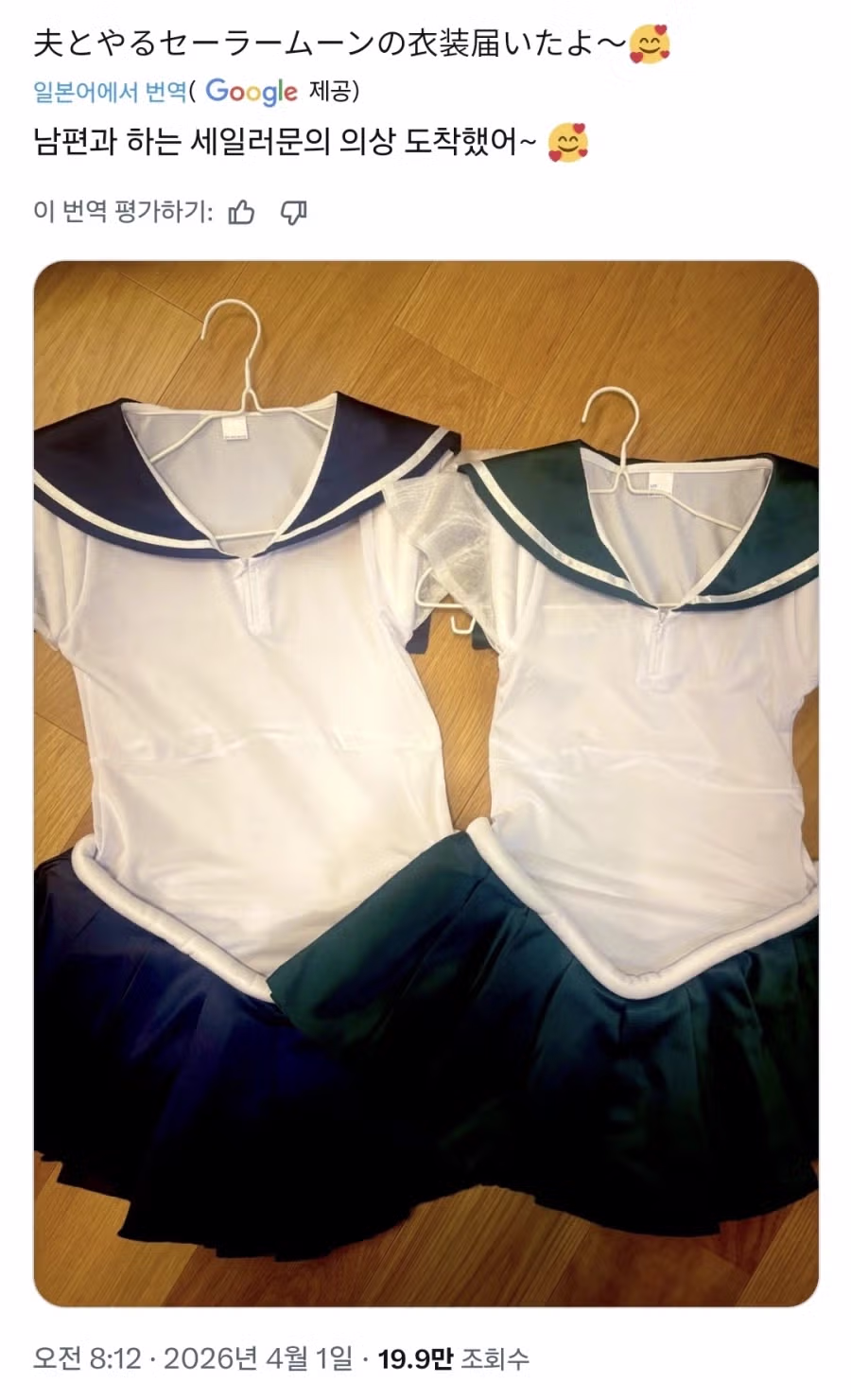 ??? : 남편이랑 입을 세일러문 옷이 도착했어~