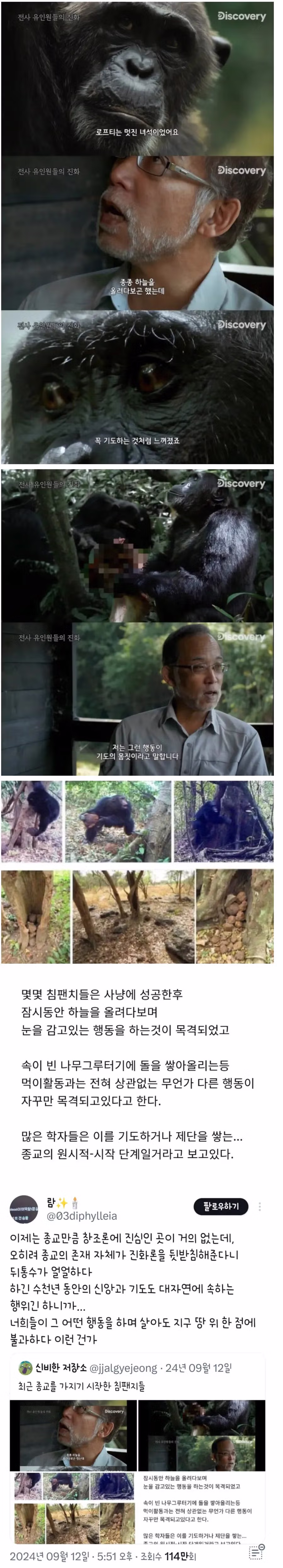 최근 침팬치에게서 엄청난게 발견되고 있다고 함