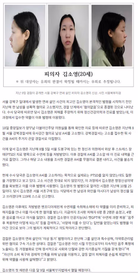 모텔연쇄살인녀 김소영 허위 강간사실 무고도 드러나