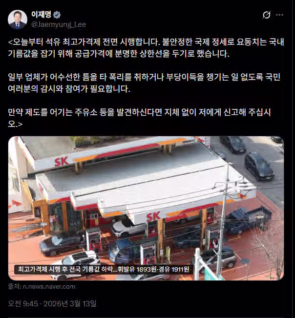 이재명 대통령 트윗