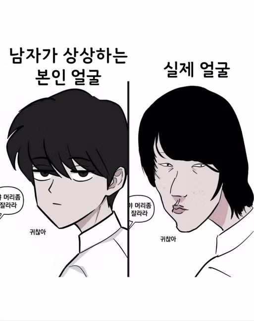 남자가 상상하는 본인 얼굴과 실제 얼굴.jpg