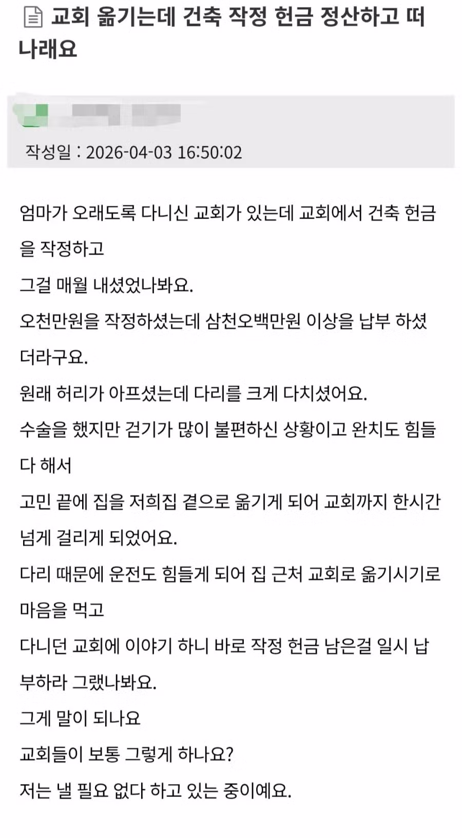 교회 떠나려면 1400만원 내놓으라는 교회40