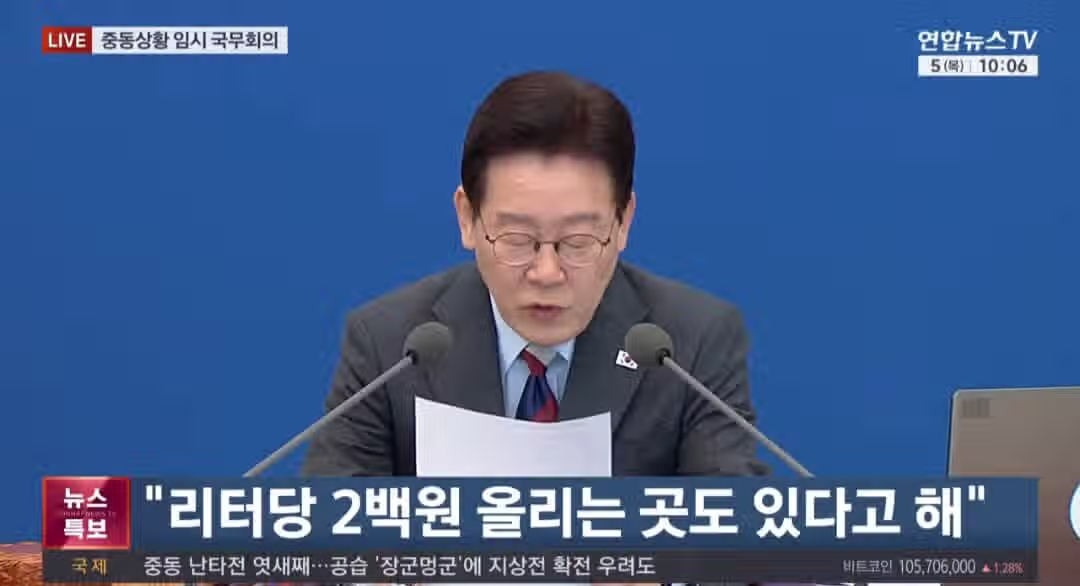 [특보]이대통령...유류공급 차질 없는데 주유소 가격 폭등 싹다 잡아내라