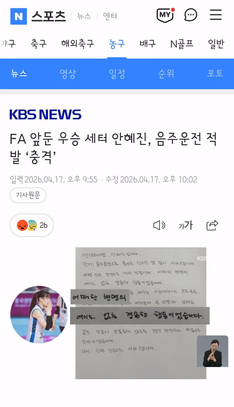 gs 칼텍스 우승 이끈 안혜진 선수 음주운전 적발
