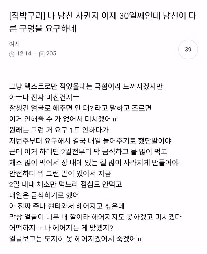 남자친구가 다른 구멍을 요구해서 금식하고 채소먹고 물 많이 먹어주는 여시