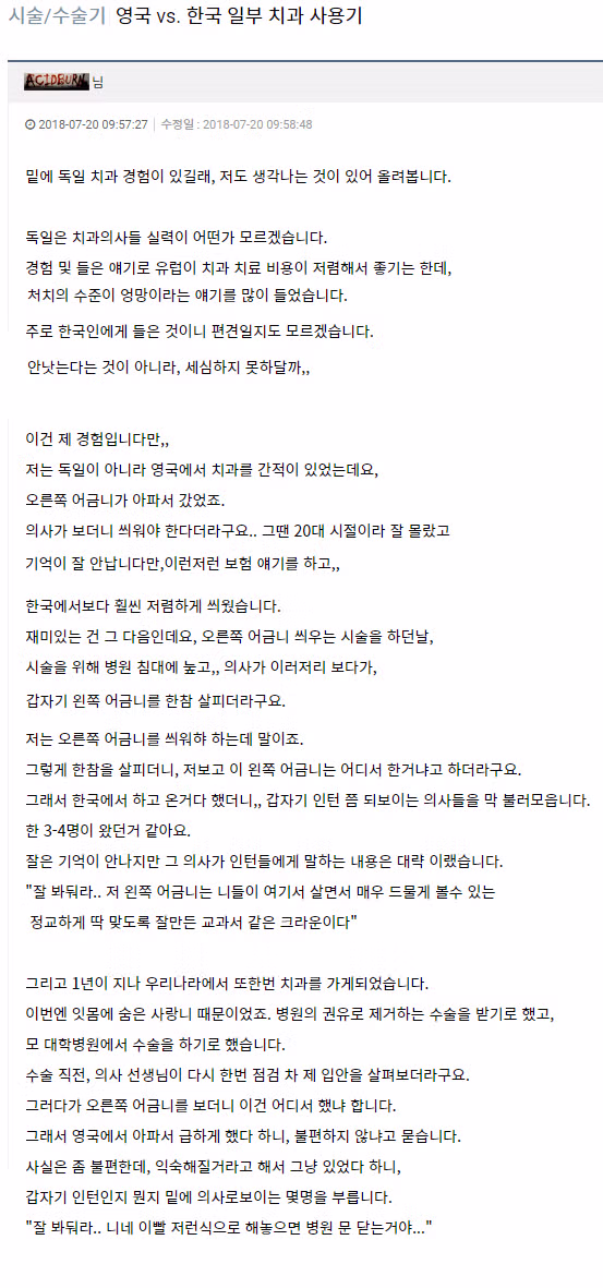 영국과 한국의 치과 후기