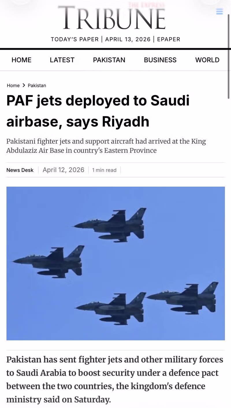 파키스탄, 상호방위조약에 따라 사우디에 병력 1.3 만 파병