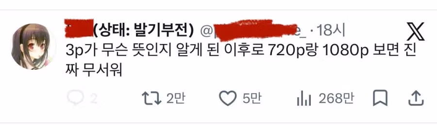 3p의 의미를 알고 충격받은 트위터 유저