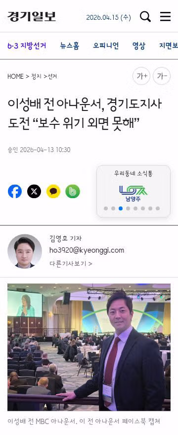이성배 전 아나운서 경기도지사 출마 시사
