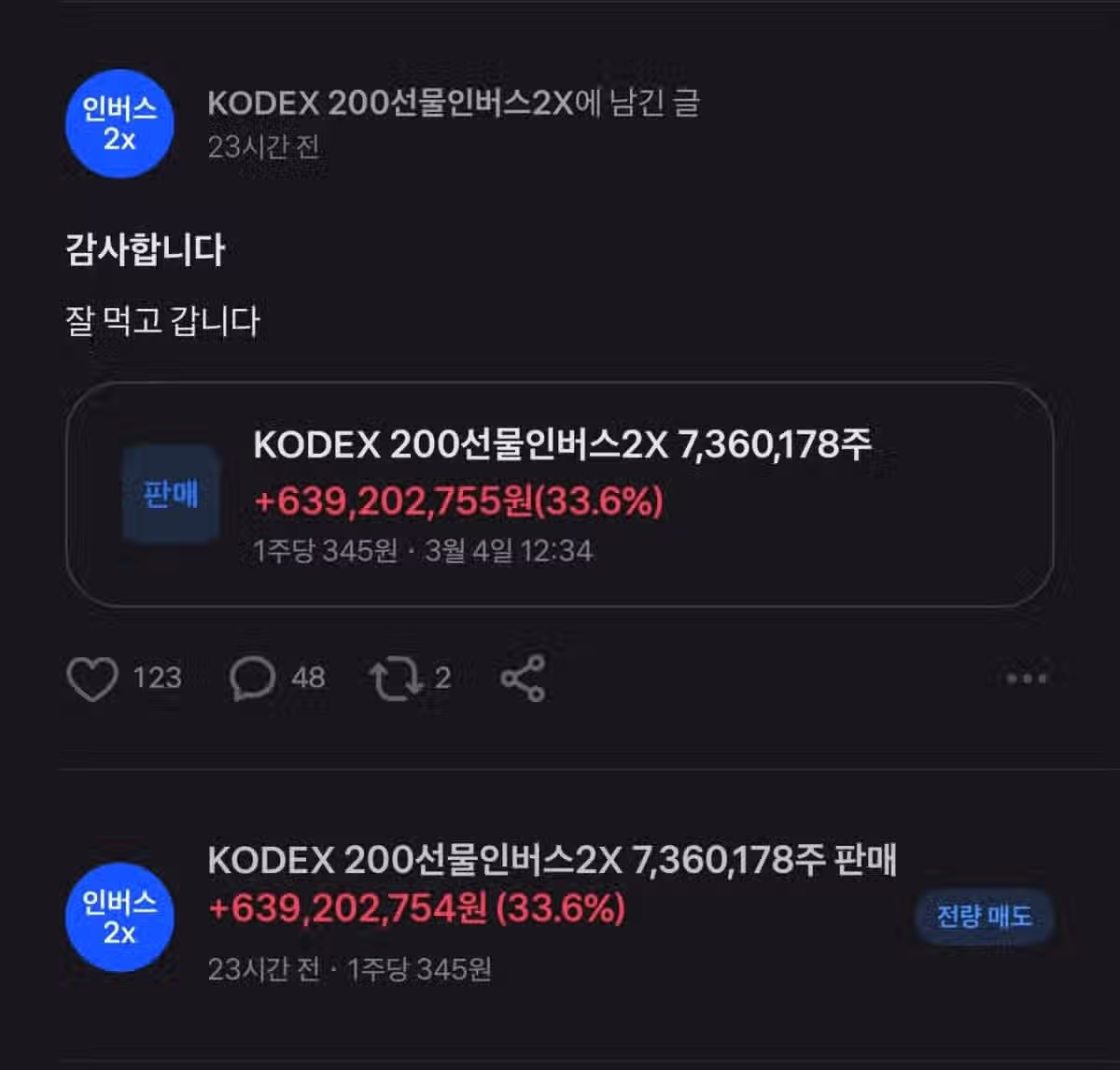 어제 코스피 인버스 2배 6억 먹었던 야수의 심장 근황