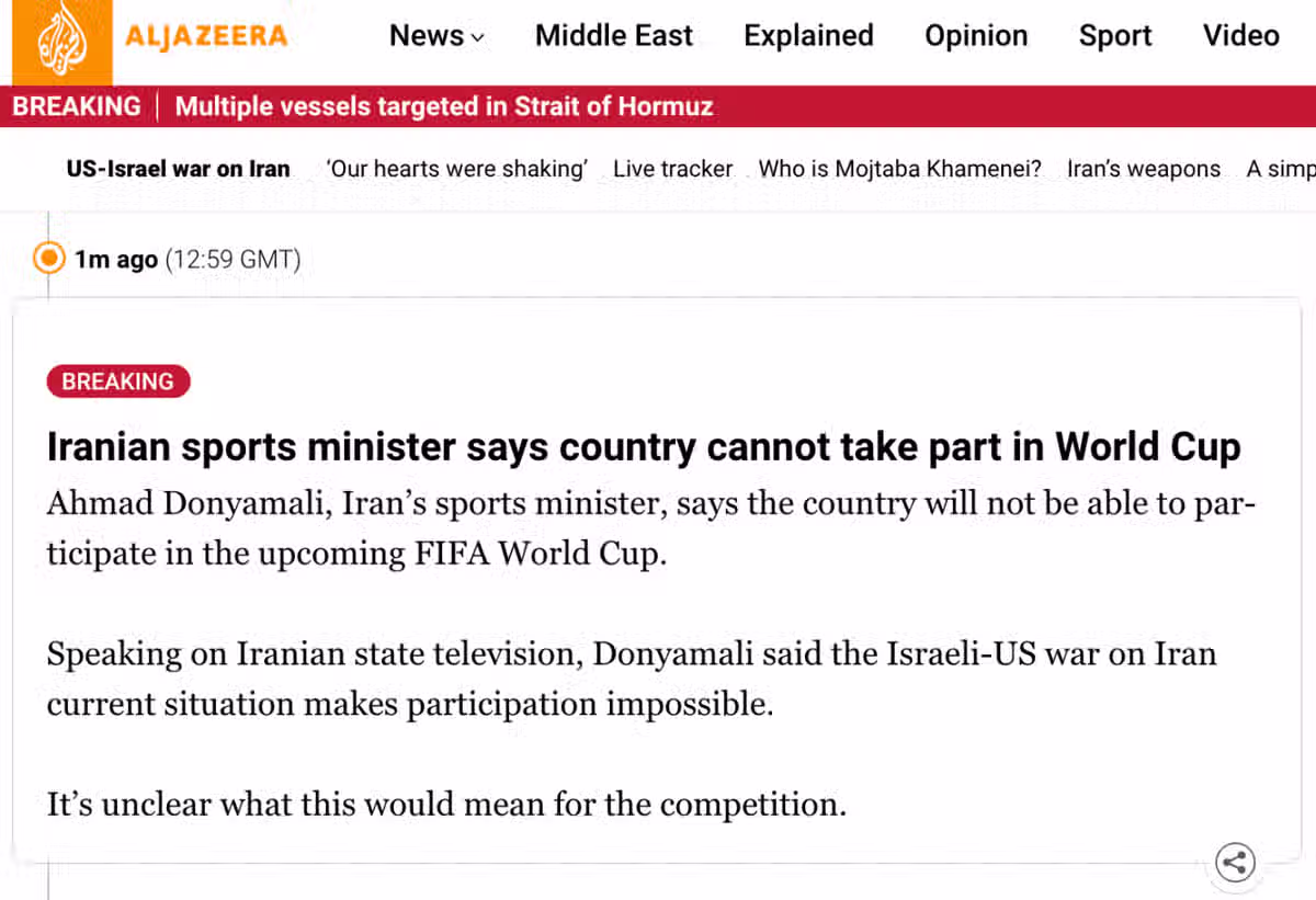 [속보] 이란, "월드컵 참가 불가" 공식 선언
