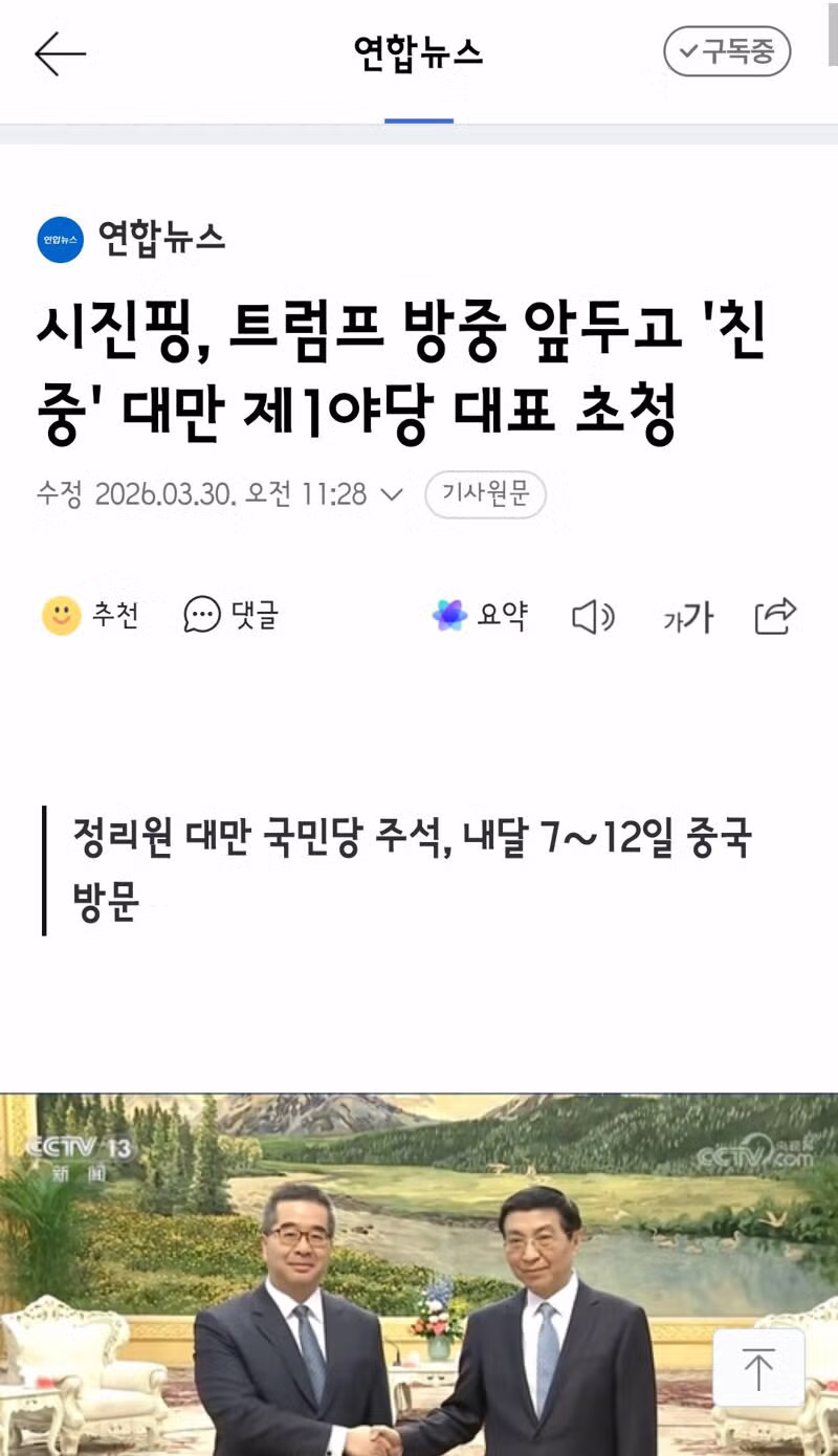 대만 국민당 주석 다음달 중국행..시진핑 환영