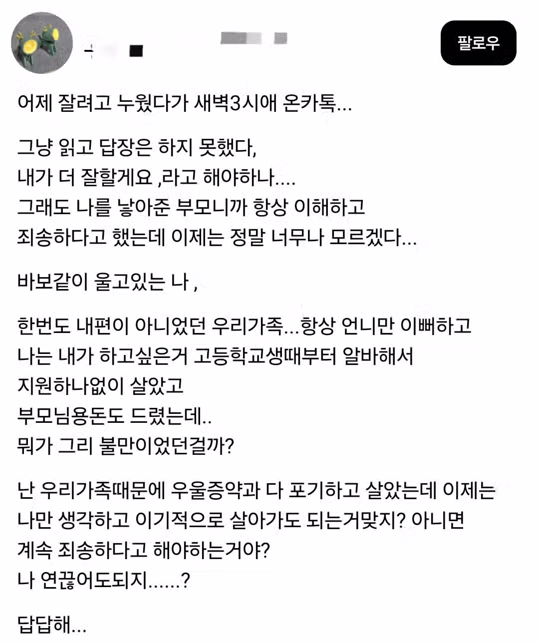 새벽 3시 엄마한테 온 카톡