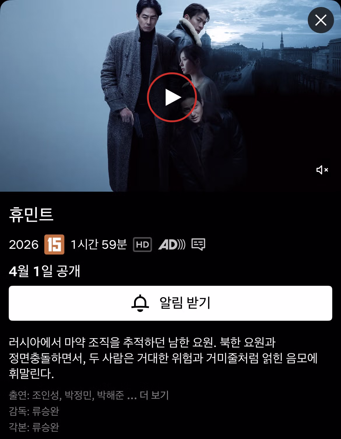 류승완 감독 <휴민트> 4월 1일 넷플릭스 공개 [정보글]