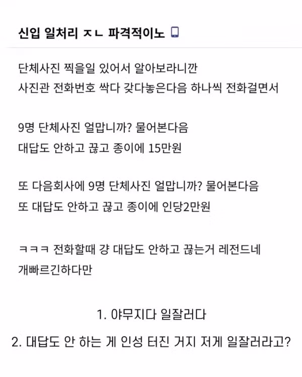 중소기업 신입 일처리 논란