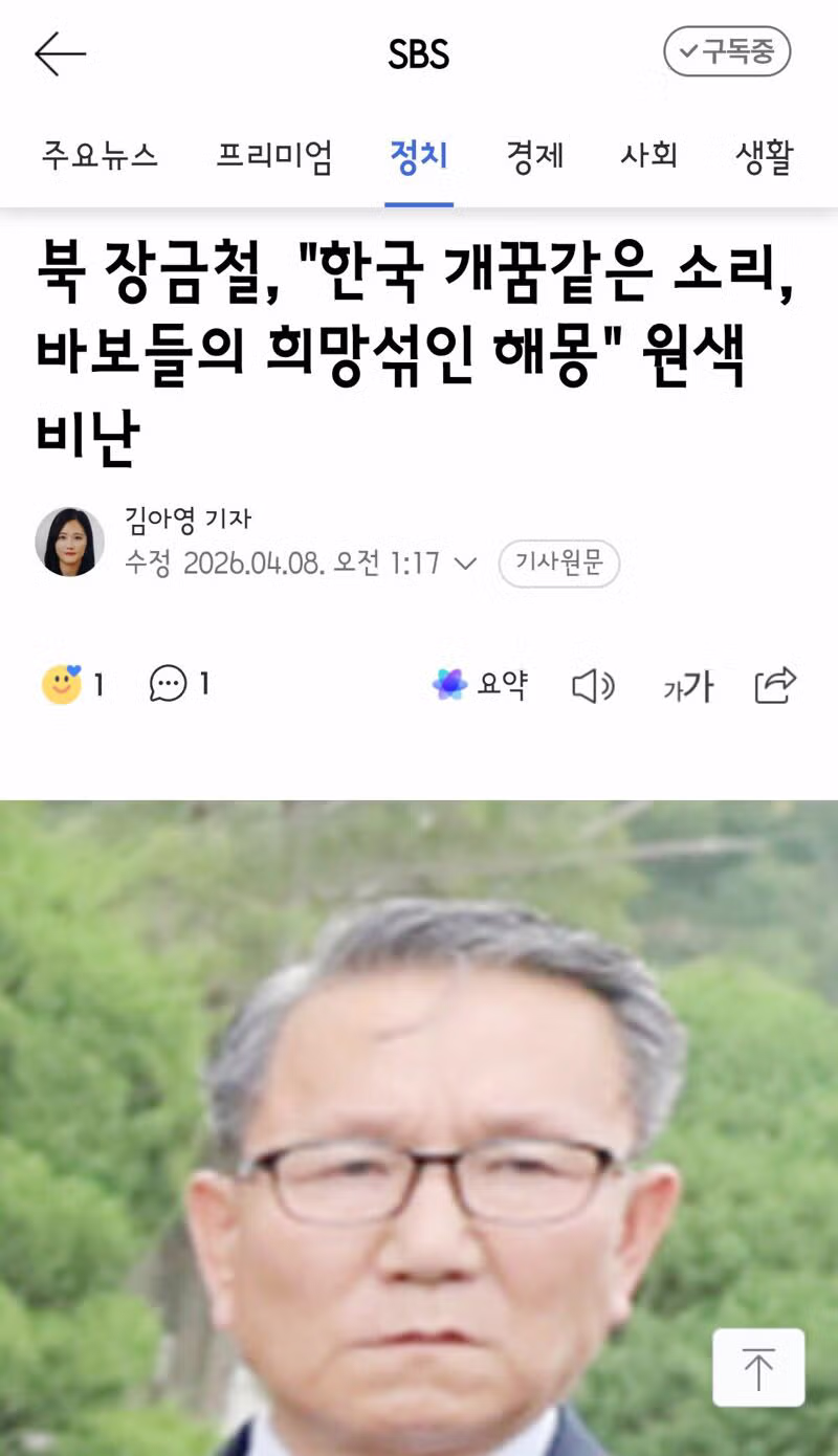 북한의 개한마리가 짖는걸 확대해석할 필요가 있을까요?뭐죠? 저 듣보잡은..안그래도 신경쓸게 한두개가 아닌데 뭔 같잖은 인간이 대한민국을 저리 평하는지…ㅉㅉㅉ