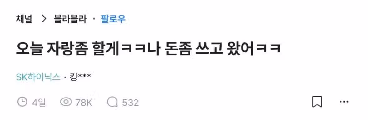 플렉스 했다고 자랑하는 하이닉스 직원