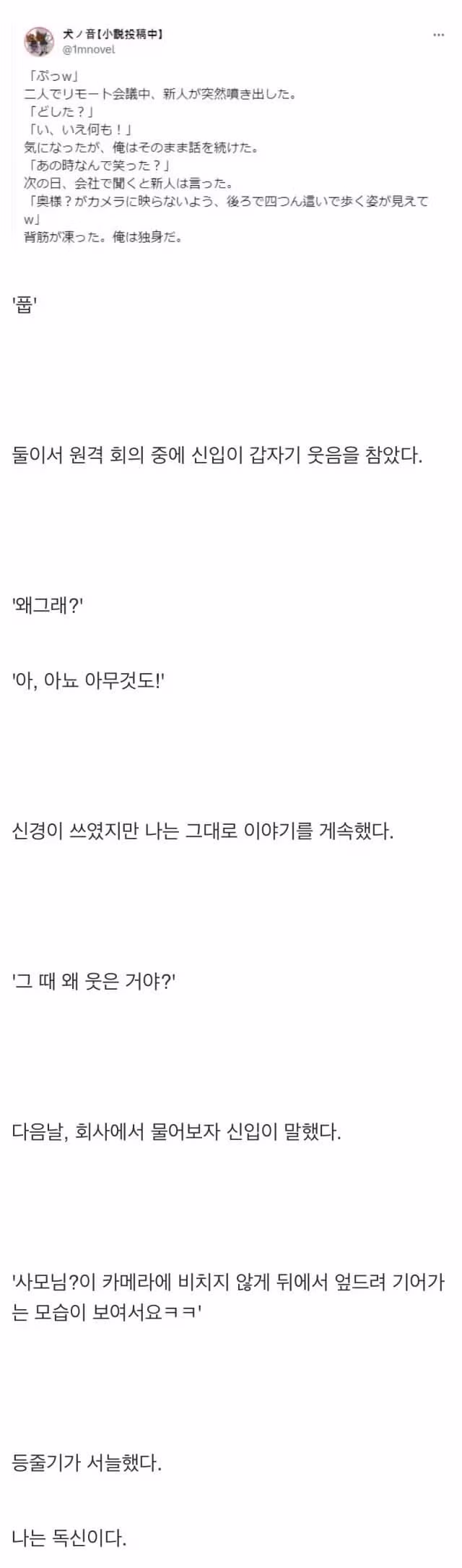 화상회의 중에 신입이 웃음을 터뜨렸다