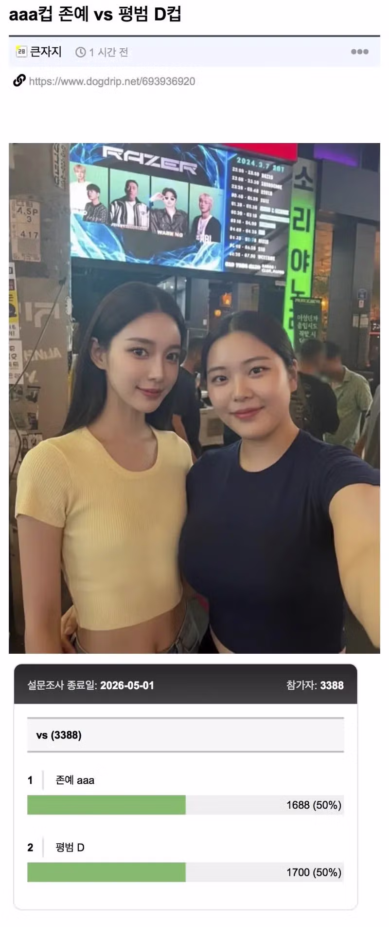 -투표- AAA컵 존예녀 vs 평범녀 D컵