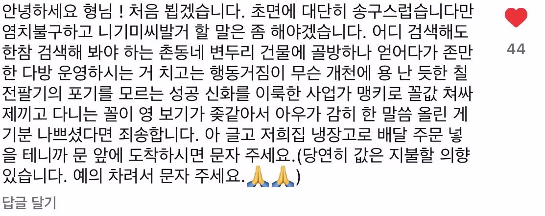 ㅅㅂ 첫줄에 예의차리고 두번째부터 둔기로 휘두르네 시발 ㅋㅋㅋㅋㅋㅋ
