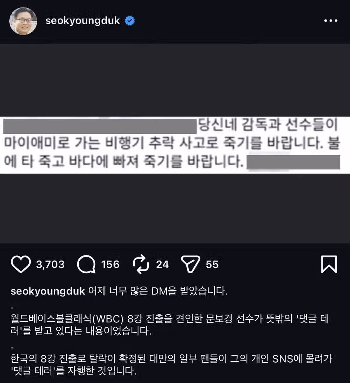 대만인이 남긴 역대급 악플 ..