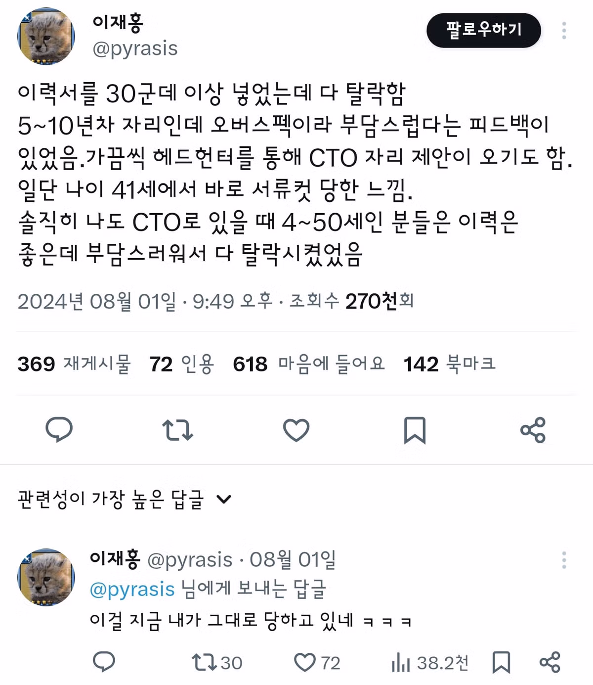 회사 : 이력은 좋으신데...나이가 많으시네요
