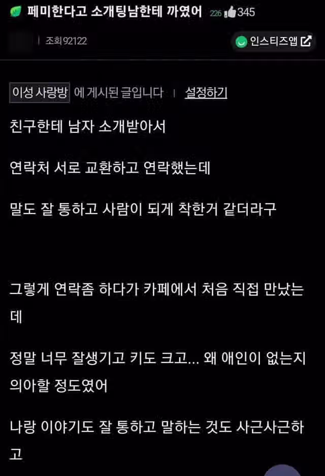 페미한다고 소개팅남한테 까였어