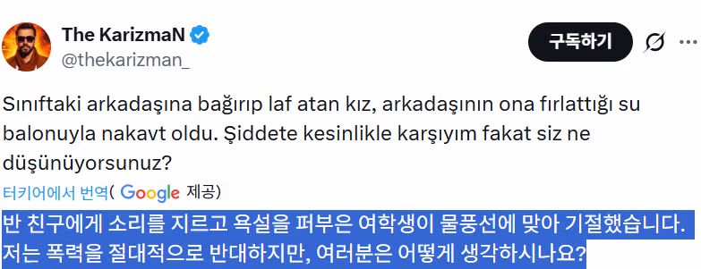 반 친구에게 소리를 지르고 욕설을 퍼부은 여학생이 물풍선에 맞아