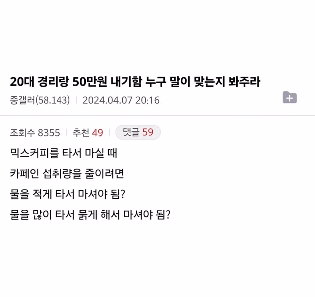 잘 모르는데 커피 가루에만 카페인 있는 거 아냐? 농도도 영향 미치나