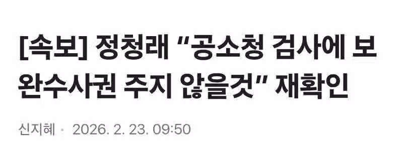 [속보] 정청래 “공소청 검사에 보완수사권 주지 않을것” 재확인