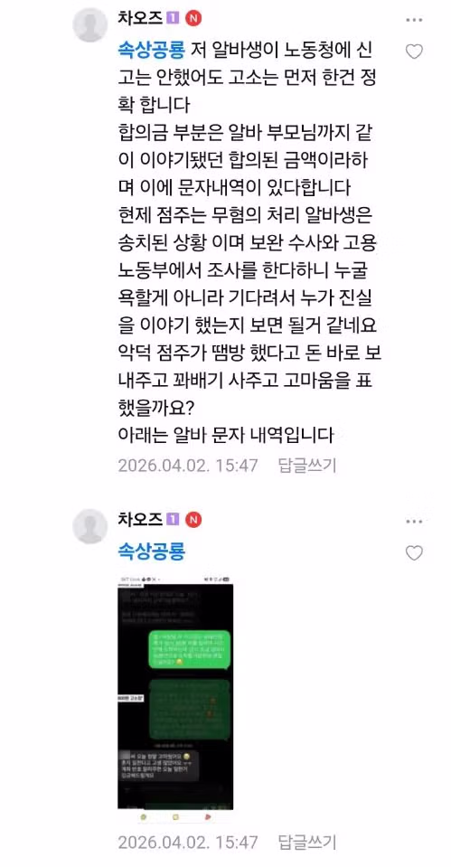 점주들 단체카톡에서 공유한다잖음 사람이 아님