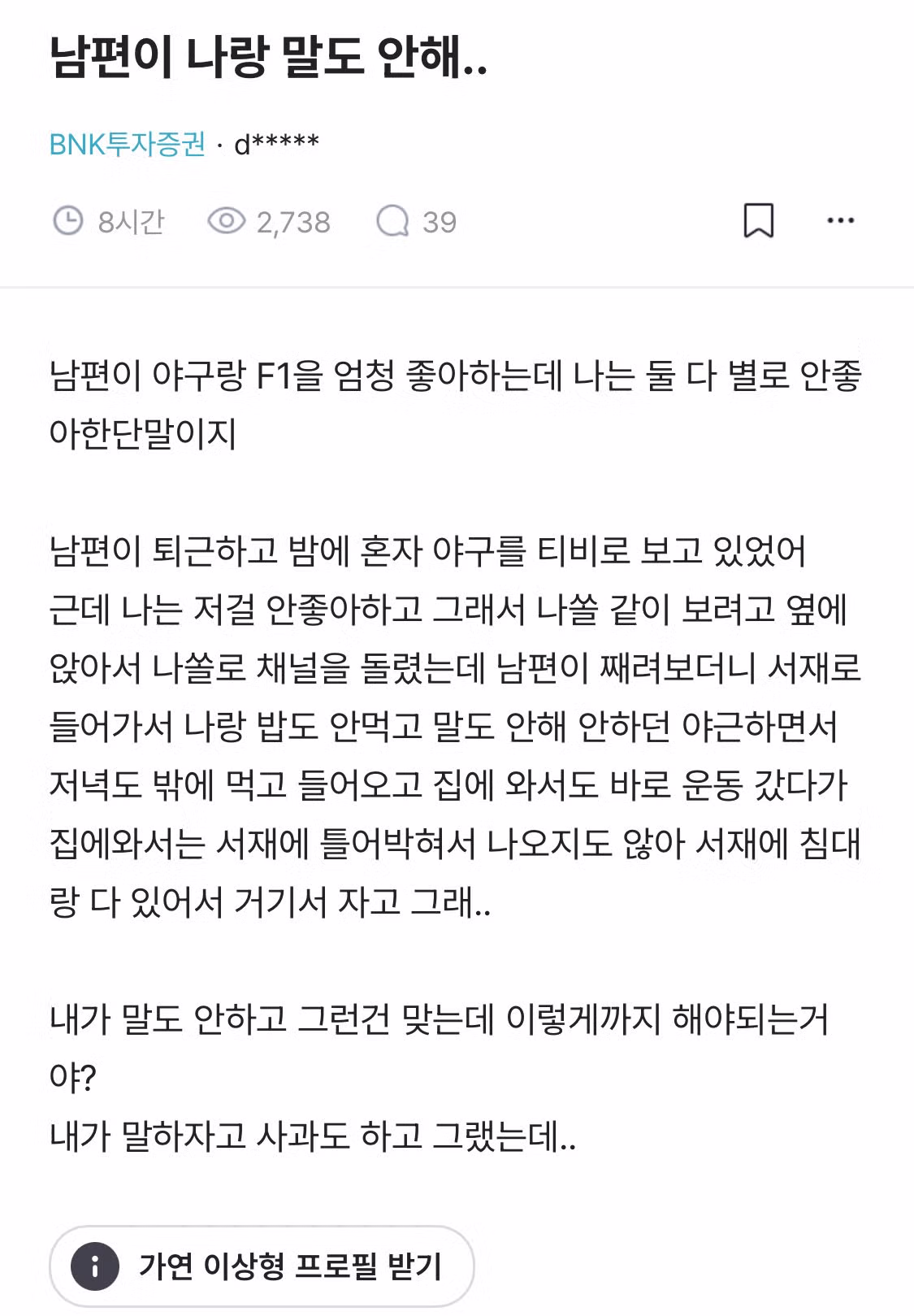 남편이 나랑 말도 안해..